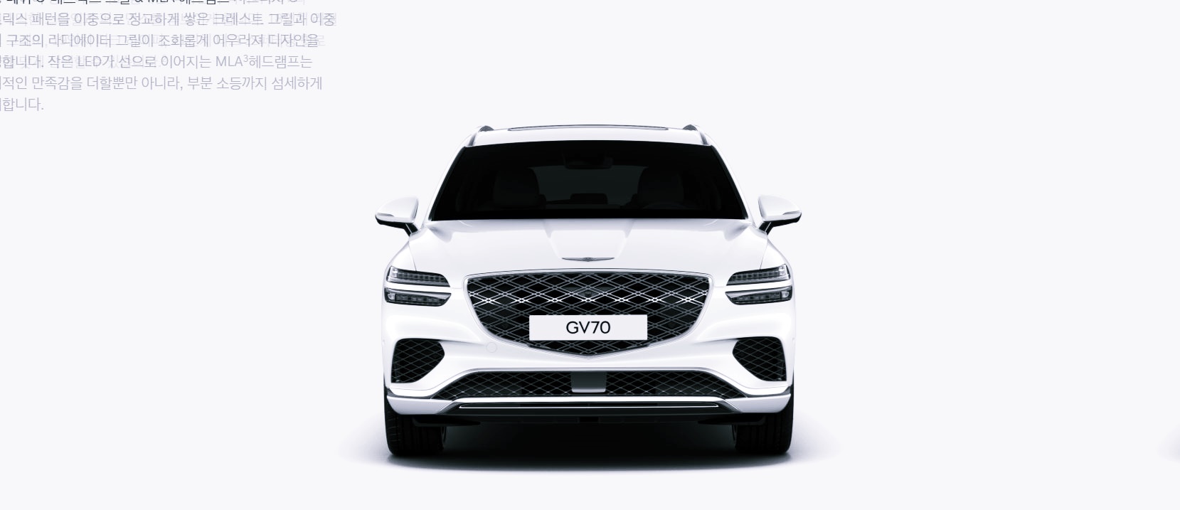 제네시스 GV70의 디자인은 프리미엄과 스포티함의 완벽한 조화를 보여줍니다.