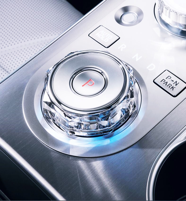 전자식 로터리 변속 다이얼, 곡선 중심의 실내 구조는 GV70만의 감성을 더욱 돋보이게 합니다.