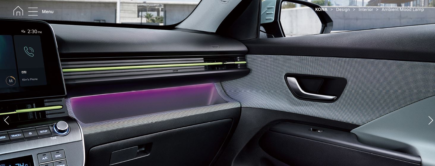 코나는 10.25인치 대형 터치스크린을 탑재하여 애플 카플레이, 안드로이드 오토와의 연동이 가능하며, 무선 충전 시스템과 프리미엄 오디오 시스템까지 제공해 더욱 향상된 운전 경험을 제공합니다.